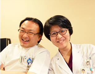 呼吸器疾患についても他の領域と同様にチーム医療が不可欠です。毎週木曜日に開催している呼吸器カンファレンスでは、医師・看護師・薬剤師・理学療法士・ソーシャルワーカーといった多職種が参加し、入院および外来の患者さんの治療方針についての検討を行っています。また、呼吸器外科や放射線科とも密な連携をとっています。気管支鏡検査によって呼吸器内科で肺癌と診断された症例は、切除可能であれば呼吸器外科で手術が行われ、再発予防のための術後補助化学療法は呼吸器内科で行うという一連の流れでの治療も行っています。