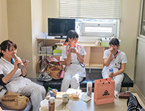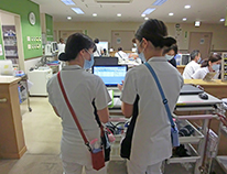 ペア2人で、患者さんのもとへ行き状態を観察し、その場で記録を入力します。清潔ケアをペアで実施します。