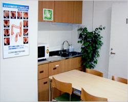 大腸検査は、前処置、検査、検査後の安静を含めると1日がかりです。大腸がん検診を受ける方も多く、少しでもリラックスして検査が受けられるようテレビつきの広い前処置室を設けています。トイレも内視鏡室内に4つあります。