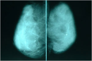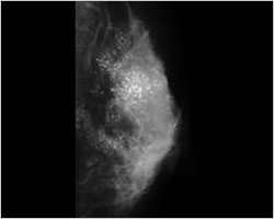 A乳房を透過するエックス線の吸収差をフイルムに写し出す撮影のことです。乳房は比較的軟らかい組織でできているために、吸収差が少なく、良好な写真を得るために専用の撮影装置を用います。このためマンモグラフィではごく小さな腫瘤や乳がんに伴う微小な石灰化など、触診では困難な微細病変を描出し、早期に乳がんを見つけることができます。