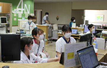 病院理念のもと薬剤部では全病棟への薬剤師常駐、AST/ICT(感染管理)、がん化学療法、緩和、褥瘡、栄養管理などのチーム医療の一員としてよりよい医療の提供ができるように積極的に取り組んでいます。目まぐるしく変化する医療の中で生き残れる薬剤師になるために「不易流行」の理念で医療を必要としている人に寄り添い、さらに必要とされるような薬剤師を目指して日々研鑚を積んでいきますので、よろしくお願いします。