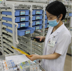 払い出されたトレイにその他必要な薬剤を取り揃え、監査を行い、病棟へ搬送しています。