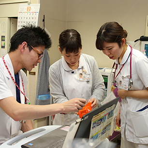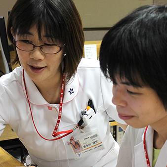 社会人教育と並行して薬剤師としての研修を受けます。プリセプター薬剤師とマンツーマンで、中国中央病院の様々なルールとともに医療の現場で働くことの責任の重さを学びます。最初の3ヶ月間は、プリセプター薬剤師と新人教育チェックリストに沿ってその日の仕事内容を振り返り、疑問点を解消していきます。細やかな指導を行い、1年目から病棟に配属します。この時期に自ら問題点を見いだし、解決策を考え、実践し、振り返り、評価し、試行錯誤を繰り返しながらよりよいものにしていくということをしっかり学んでもらいます。