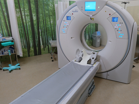 CTとはコンピューター断層装置(Computed Tomography)の略で、エックス線を利用して人体の断層像を得る検査です。