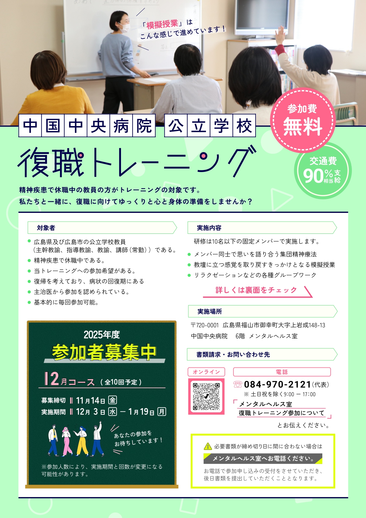 教職員向け復職トレーニング 12月コースのお知らせ