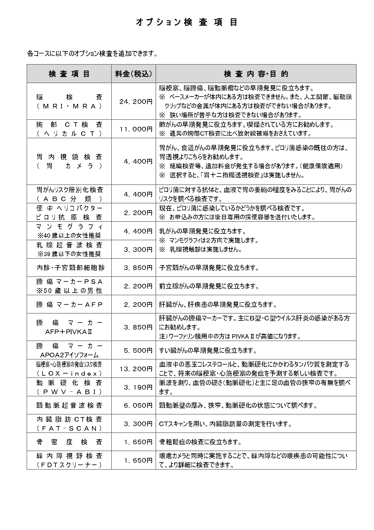 2.プレミアムコース 基本検査に気になる検査を加えた安心コース ※昼食付き