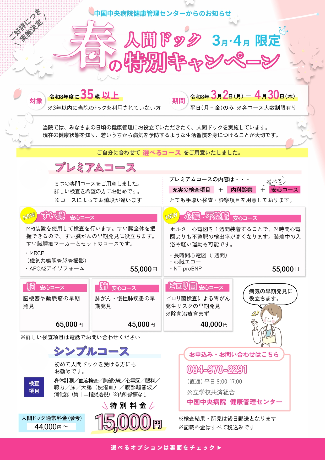 「人間ドック 春の特別キャンペーン」のお知らせ